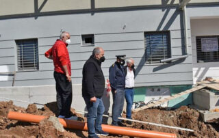Τα συνεργεία της ΔΕΥΑΚ επί το έργον, παρουσία του Αστυνομικού Διευθυντή, Νίκου Έξαρχου, και του Προέδρου της Επιχείρησης, Πέτρου Τόσκου, για τη σύνδεση του νέου Αστυνομικού Μεγάρου με